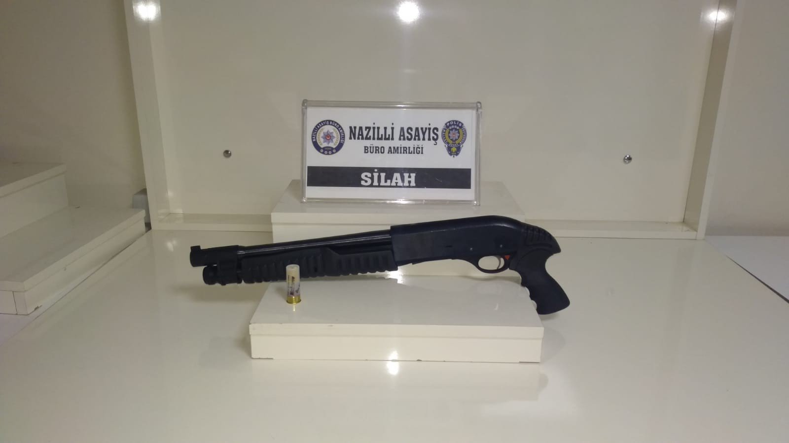 Edinilen bilgiye göre, Nazillide gece saatlerinde siyah renkli araba içerisinde çevredekilere tüfek göstererek gezen kişiler olduğu ihbarı üzerinde polis ekipleri harekete geçti. Polis ekiplerinin kısa sürede yakaladığı dört kişiden bir av tüfeği ve bir adet ses fişeği yakalandı.